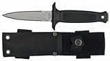 Full tang construction. Sure grip checkered rubber handle. Nylon webbed sheath. Handle Material . Rubber. Blade Material. 420 Stainless. Blade Edge. serrated. Handle Color. Black. Blade Color. Silver. Blade Type. double edge. Knife Type. Fixed Blade. Blade Length. Overall Length. 7.5".